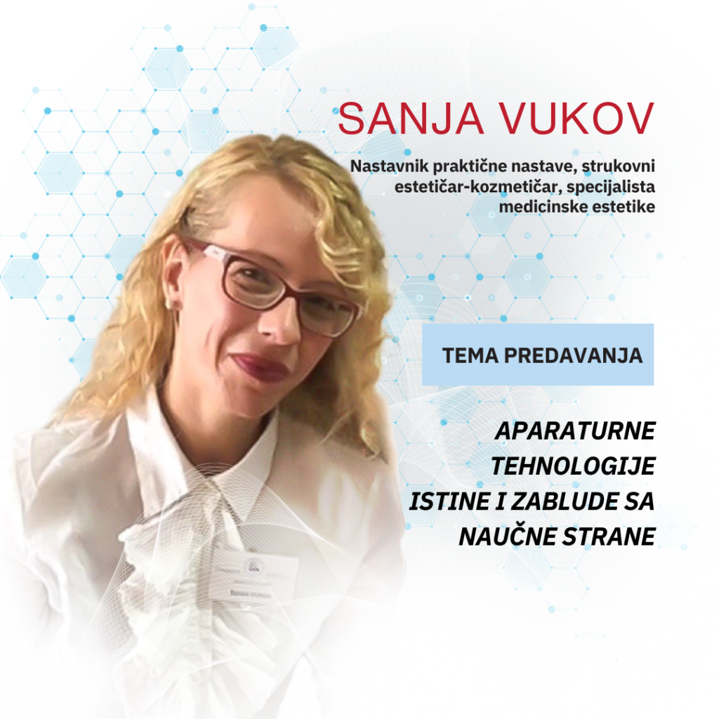 Vlasnik i osnivač kozmetološkog centra “ Sensi Skin“. Više od 20 godina iskustva u radu i stalnog usavršavanje u oblasti kozmetke i estetike. Velika ljubav su edukacije i prenošenje znanja, pa iza sebe ima veliki broj stručnih predavanja iz ove oblasti i 6 godina rada u nastavi kao nastavnik praktične i teorijske nastave u srednjoj medicinskoj školi u Novom Sadu.